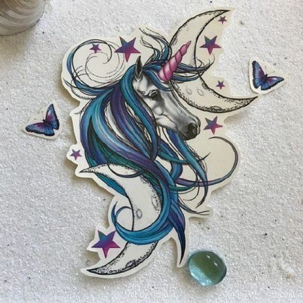 女生喜欢的独角兽的一组纹身图案和手稿9张