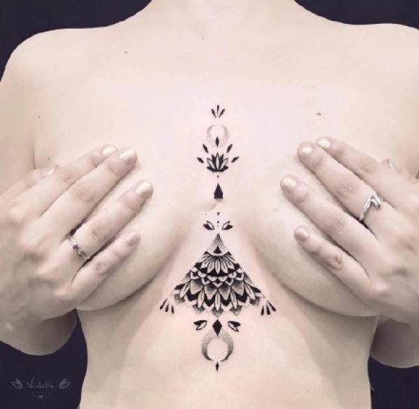 有点小清新感觉的各部位黑灰点刺纹身作品图片