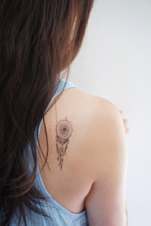 女孩子喜欢的小清新捕梦网纹身作品
