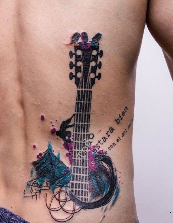 双大臂纹身 男生大臂上彩色的吉他纹身图片