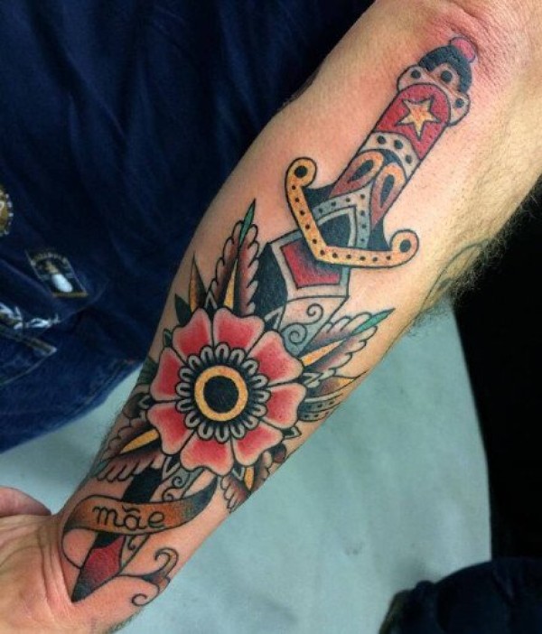 欧美匕首纹身 锋芒逼人的匕首纹身图案