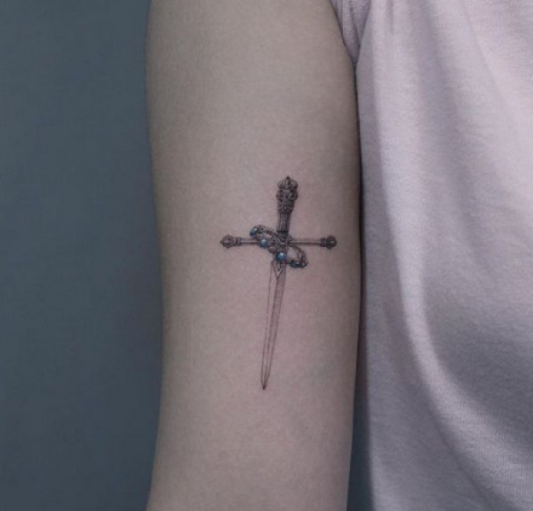 小剑纹身 黑灰色的一组9张小剑纹身图案