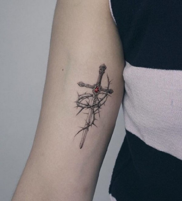 一把剑一样的十字架纹身图案