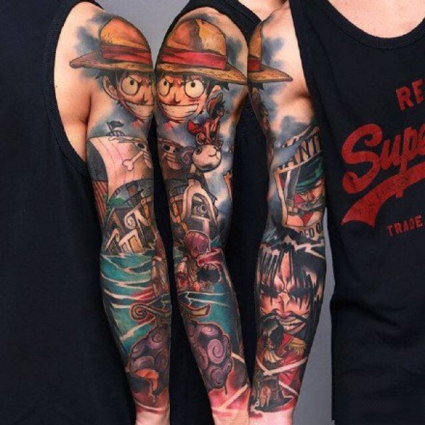 腿部点刺日本漫画海贼王全体成全纹身图案