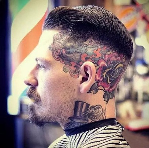霸气男头部时尚纹身图片_头部纹身图案大全_纹身图吧