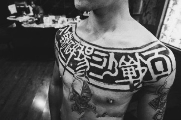 很个性的中国风水墨汉字元素的纹身作品图案
