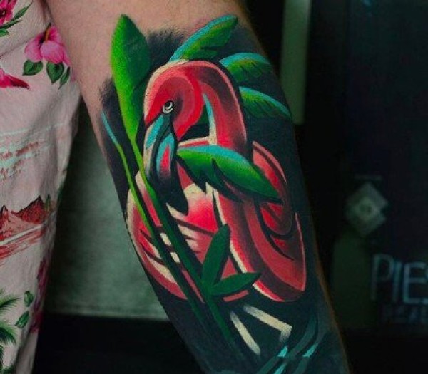 纹身图案动物 9张艳红如火的火烈鸟纹身图案