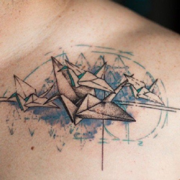 千纸鹤纹身图案-听说折满一千个千纸鹤可以实现愿望的纹身图片