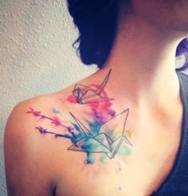 8张水彩色千纸鹤纹身图案图片欣赏