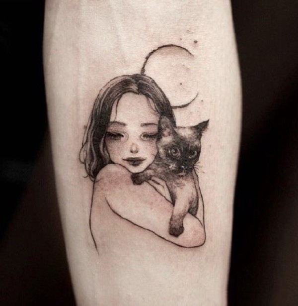 韩国纹身师的一组可爱卡通小女孩纹身图案作品