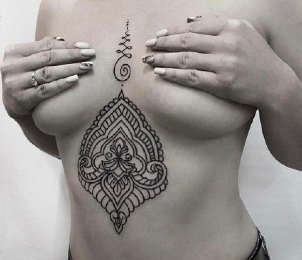 性感胸部纹身 9款女生别致优雅的胸下梵花纹身图案