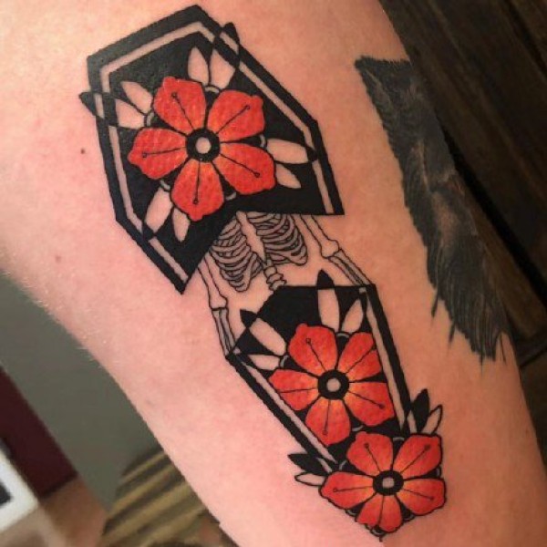 吸血鬼的棺材文身手稿作品由纹身图吧分享