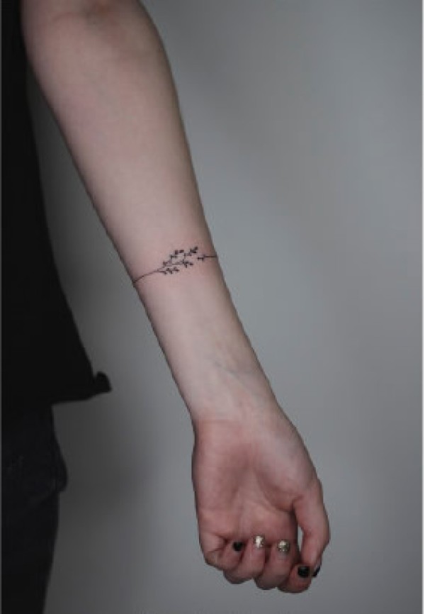 缠绕在小手臂手腕上的花藤纹身图案作品