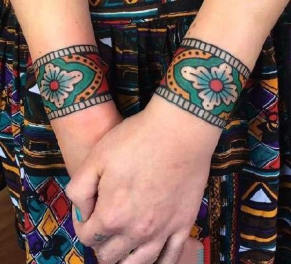 小臂手腕处很有民族风情的手环臂环纹身图案
