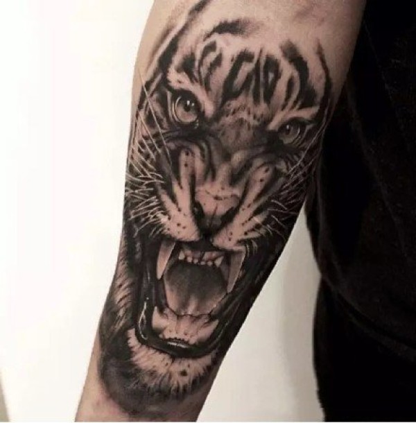 男性们都喜欢这样帅气的凶猛的老虎纹身图案