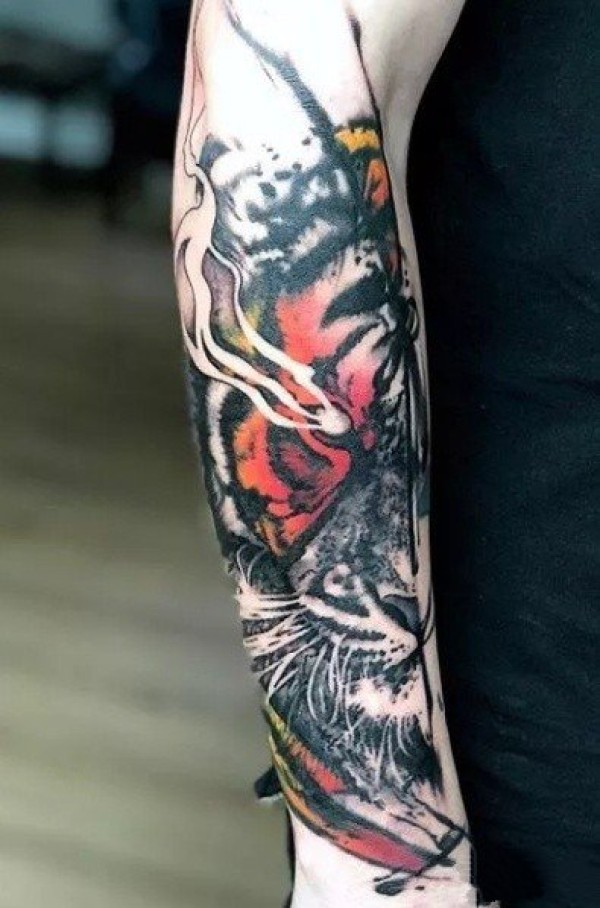 男性们都喜欢这样帅气的凶猛的老虎纹身图案