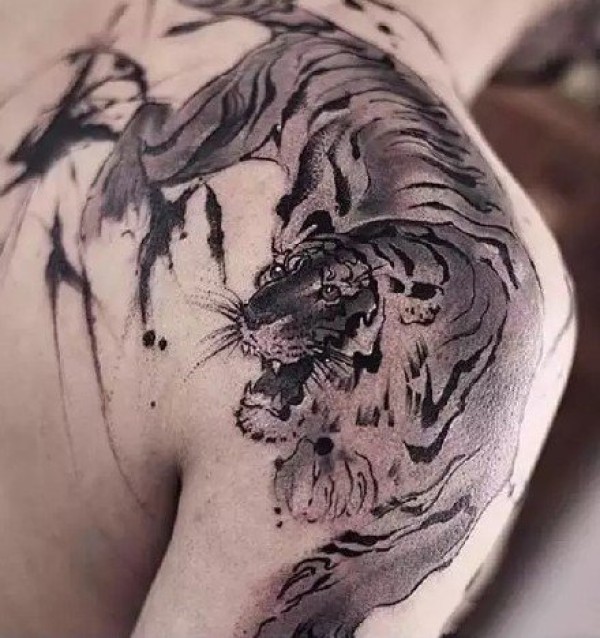 男性们都喜欢这样帅气的凶猛的老虎纹身图案