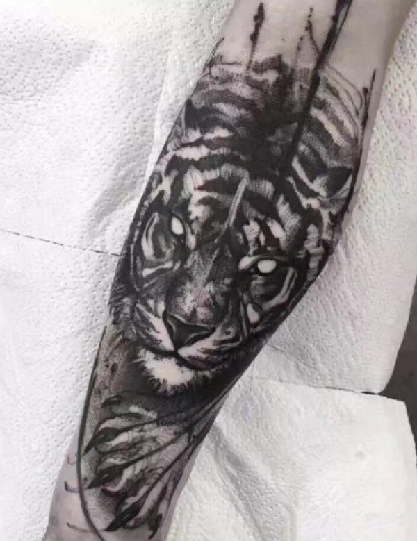 男性们都喜欢这样帅气的凶猛的老虎纹身图案