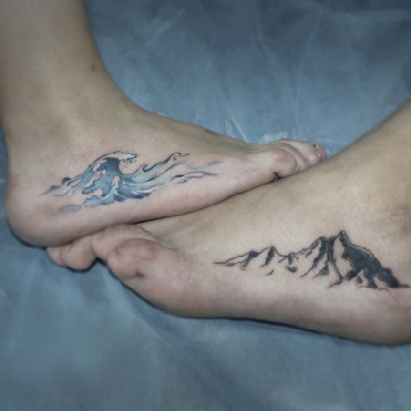 一组恋人身上的成对小清新情侣纹身图案欣赏