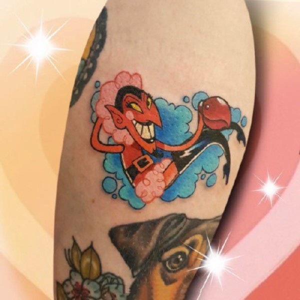 唤起儿时回忆的一组彩色卡通纹身图案作品