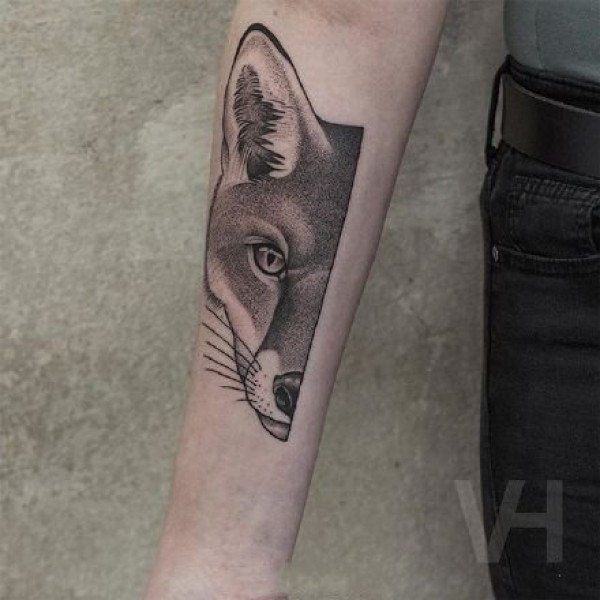 半脸风格的动物黑灰点刺纹身图案作品9张