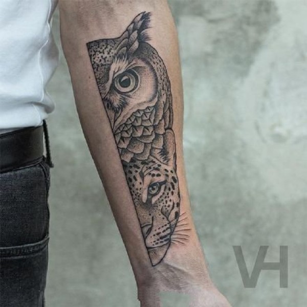 半脸风格的动物黑灰点刺纹身图案作品9张