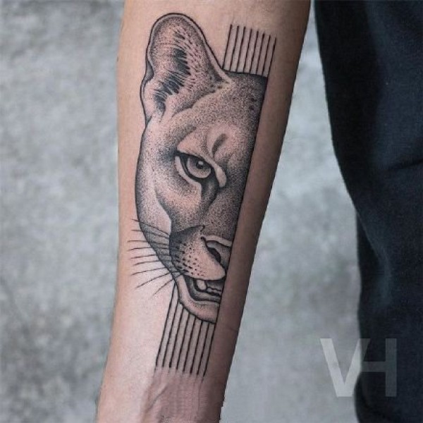 半脸风格的动物黑灰点刺纹身图案作品9张
