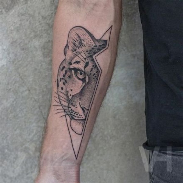 半脸风格的动物黑灰点刺纹身图案作品9张