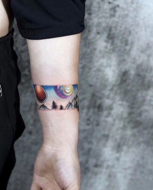星球臂环:9张小手臂上的一组星球手环臂环纹身图案