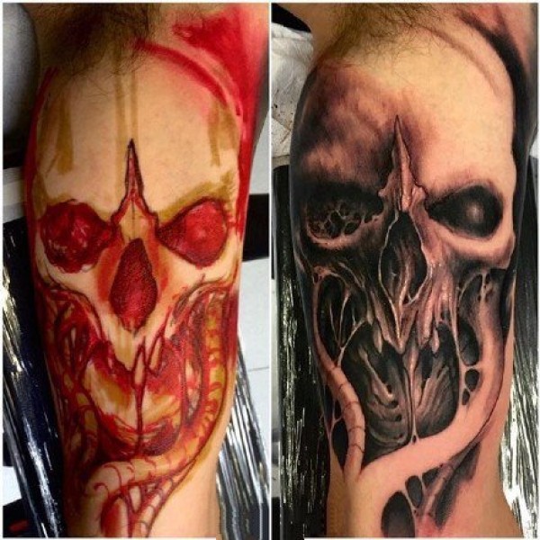 黑暗骷髅纹身--无边黑暗和绵延死灰骷髅纹身作品9张