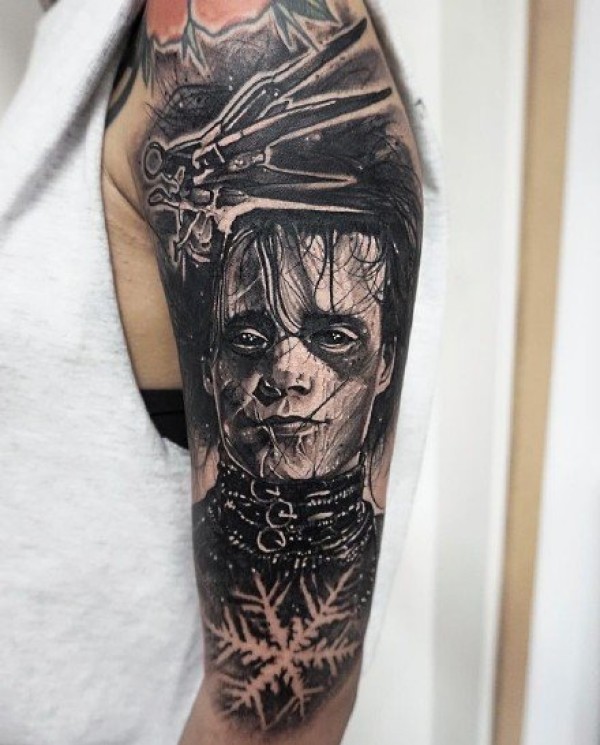 一套欧美动画片角色写实黑灰手臂纹身作品