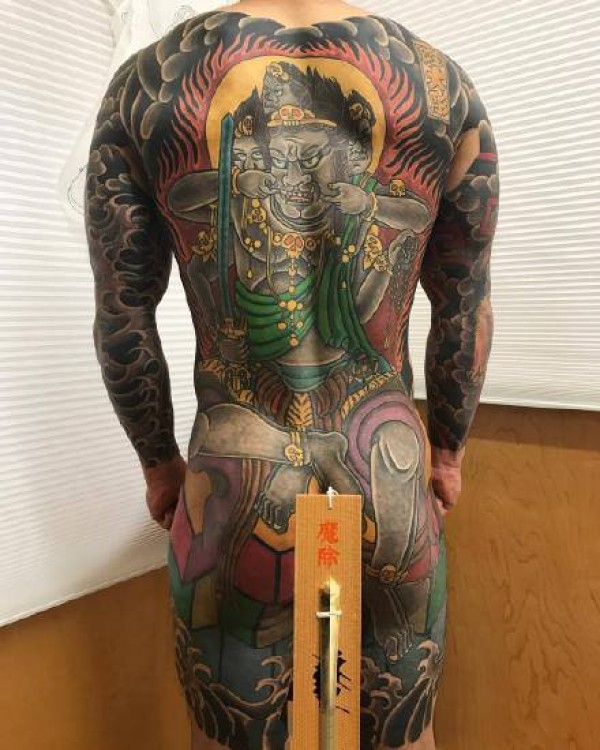 传统风格的大满背全胛纹身作品