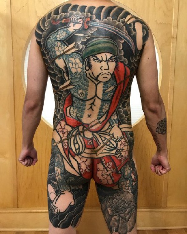 传统风格的大满背全胛纹身作品