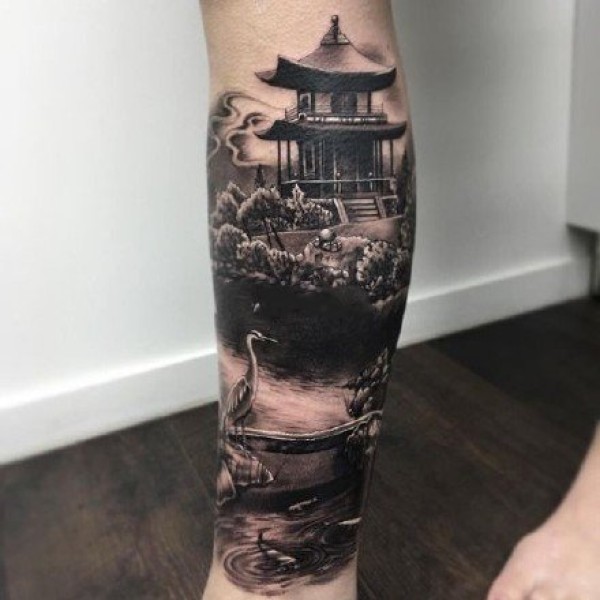 古塔纹身--9张中国风古代塔楼建筑纹身图案作品
