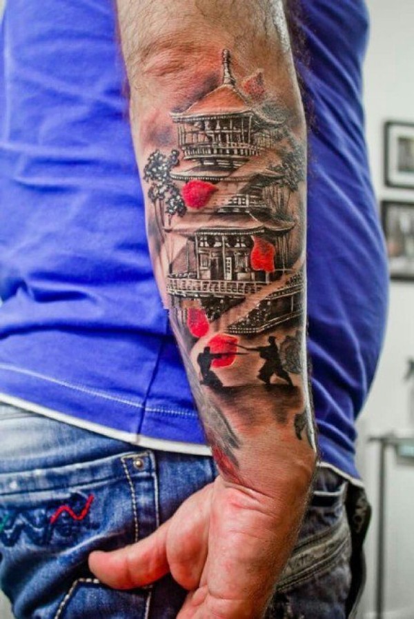 古塔纹身--9张中国风古代塔楼建筑纹身图案作品