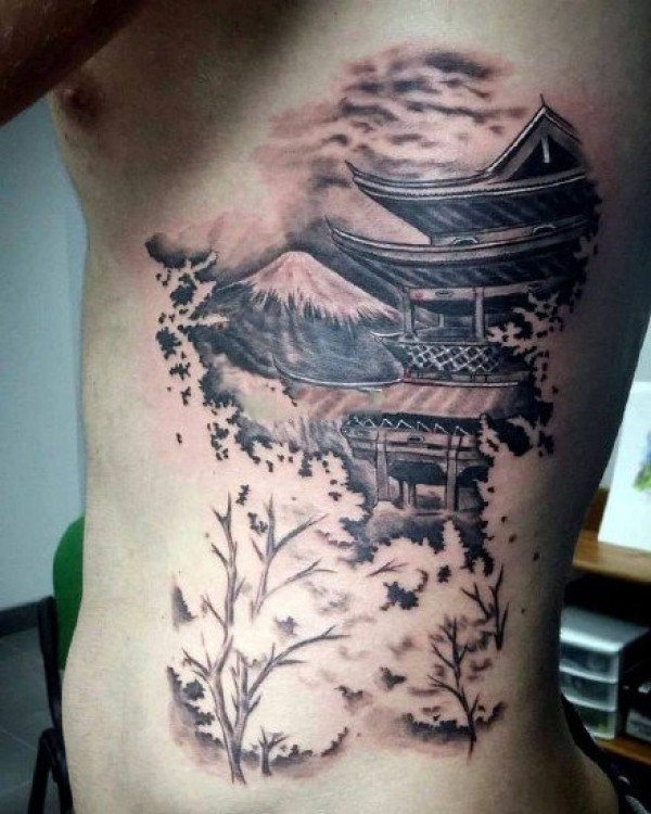 古塔纹身--9张中国风古代塔楼建筑纹身图案作品