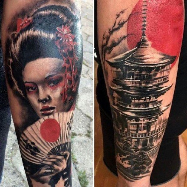古塔纹身--9张中国风古代塔楼建筑纹身图案作品