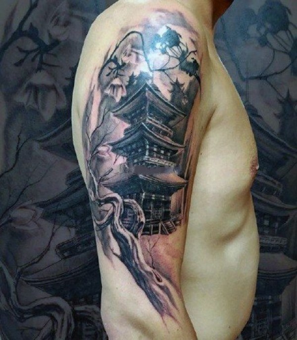 古塔纹身--9张中国风古代塔楼建筑纹身图案作品