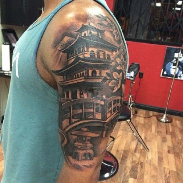 古塔纹身--9张中国风古代塔楼建筑纹身图案作品