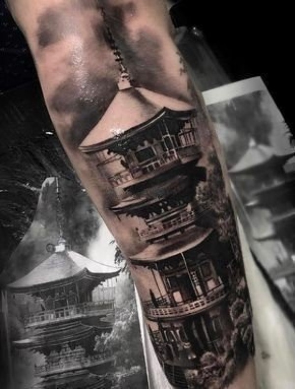 古塔纹身--9张中国风古代塔楼建筑纹身图案作品