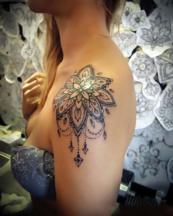 一组肩部上的梵花图腾纹身图案作品