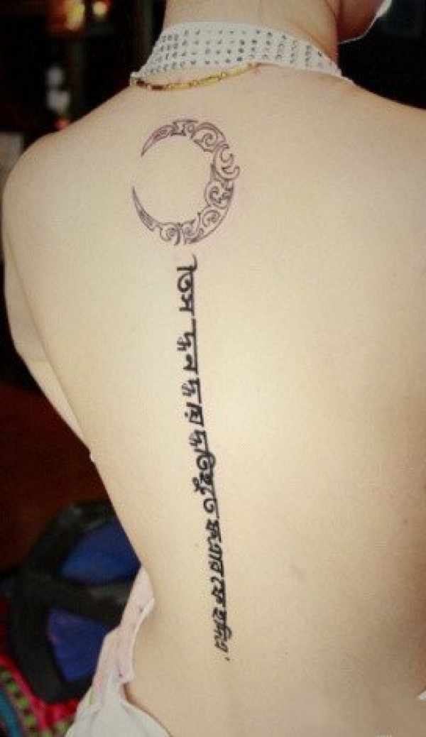 纹身佛经图案 男生后背上黑色的佛经纹身图片