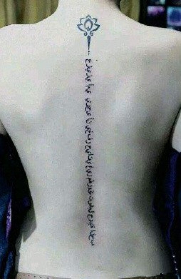 纹身佛经图案 男生后背上黑色的佛经纹身图片