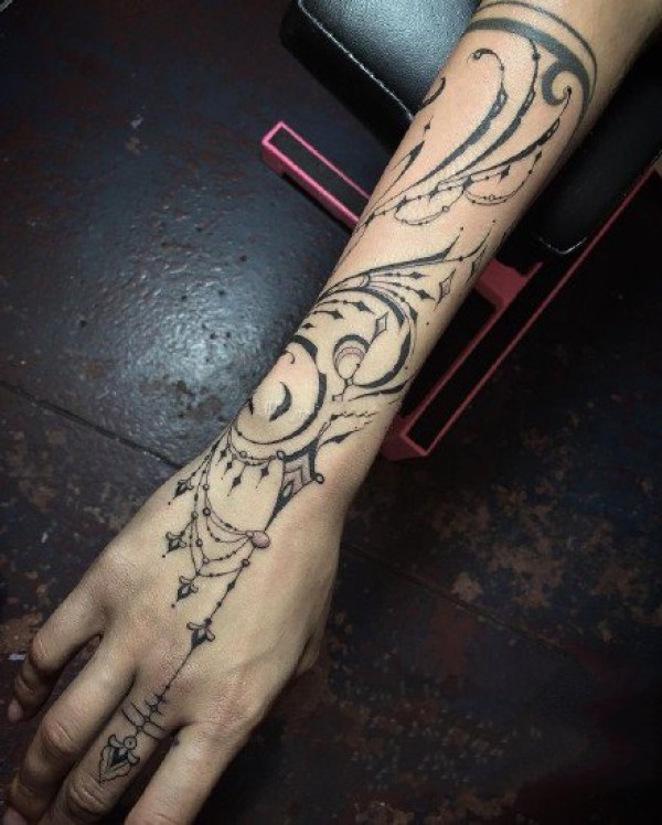 女性才能完美驾驭的线条图腾纹身作品图片