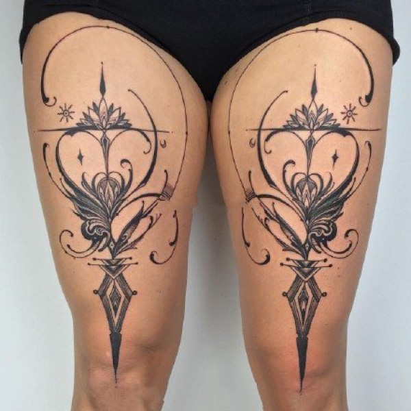 女性才能完美驾驭的线条图腾纹身作品图片
