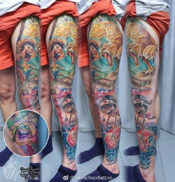 传统风格的一组男性花臂和花腿纹身图案欣赏
