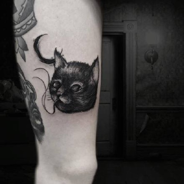 黑化了的一组9张暗黑猫咪纹身图案作品