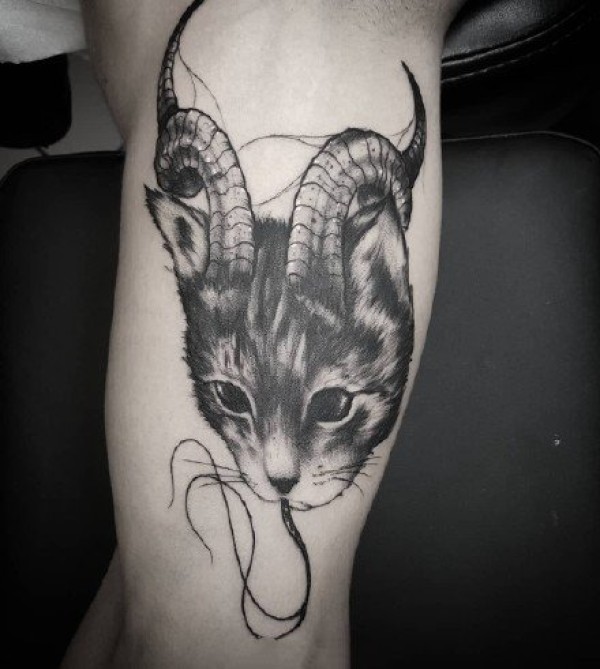 黑化了的一组9张暗黑猫咪纹身图案作品
