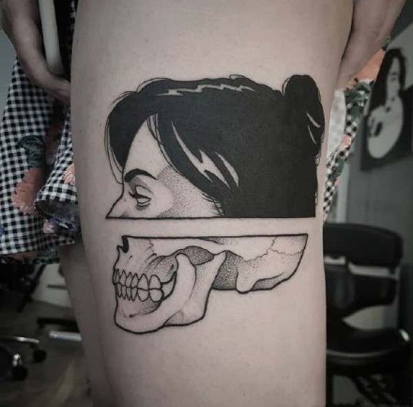 花腿纹身--一组大黑腿纹身图案作品欣赏