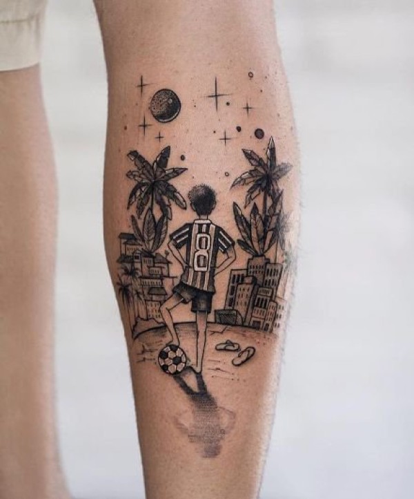 花腿纹身--一组大黑腿纹身图案作品欣赏